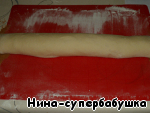 Свернуть тесто в рулет, начиная с ближней от себя стороны.