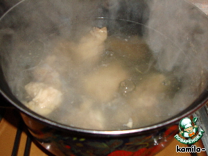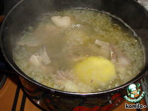 За полчаса или примерно 45 минут до готовности в бульон положить нарезанные вдоль картофелины.