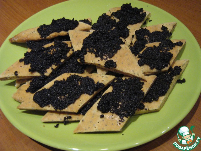 Раскатываем тесто в пласт толщиной 2-3 мм и выкладываем на смазанный маслом противень. Традиционно готовые шулики неправильной формы, так как делаются путем отламывания небольших кусочков от общего коржа. Но тут я чисто из эстетических целей отступила от традиций и сделала прямоугольные надрезы на тесте. Выпекается наш корж в разогретой до 160 градусов духовке до легкого золотистого цвета, должна появится корочка, но внутри он все еще мягкий (но не сырой).