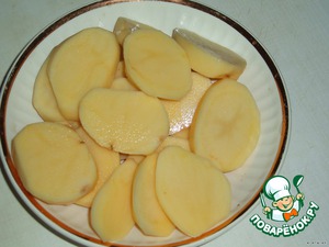 Картофель почистить, нарезать пластинками толщиной в 1 см.