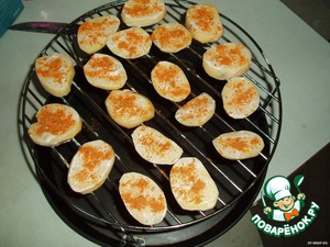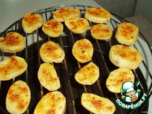 Обмазать майонезом. Расположить на высокой решетке для микроволновки. Посыпать приправой для картофеля.