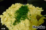 В начинку также добавить 1ст. л. растопленного сливочного масла и мелко рубленый укроп, начинку перемешать с укропом.