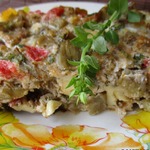 Главное, что вкусно получается! Я делала из 1 баклажана + 2 помидора + 200 г феты, да заливку значительно уменьшила: 4 ст.л. молока и 2 яйца