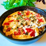 • Помидоры вымыть, нарезать кубиками, добавить в форму вместе с Фетой и зеленью петрушки. Сбрызнуть смесь оставшимся маслом и аккуратно перемешать.