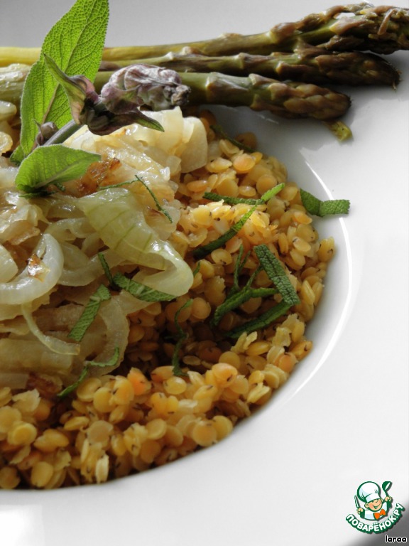Насмотревшись на блюда из чечевицы, решила я приобрести сей продукт для некоторых приглянувшихся мне блюд. Помимо сортов чечевицы из рецептов, я прикупила ещe чечевицу Пардина, польстившись, как любитель орехов, на надпись на упаковке, что данная чечевица имеет ореховый вкус. Покопавшись в интернете, я нашла интересный рецептик, который хочу предложить вашему вниманию. На сайте такого не нашла. Сразу оговорюсь, ингредиенты и их количество выложу, как в оригинале. Я делала половину этой порции (на пробу, так сказать), и, к сожалению, некоторых продуктов не было в моeм холодильнике. Но, несмотря на всe это, блюдо оказалось простым в приготовлении и вкусным.