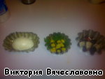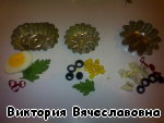Все разложили. Проявите фантазию - главное заранее знать какой стороной будет стоять заливное к верху, т.е. где будет "попа" а где будет верх.