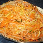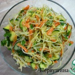Я к Вам с отчётом)) Вкусный салатик! Готовлю и с фунчозой, и без неё. Добавляю зелёную редьку, либо свежий огурчик. Немного сахарку, уксуса, специй, заливаю раскалённым маслом. Очень подходит салат к картофельному пюре! Спасибо Вам за рецепт!