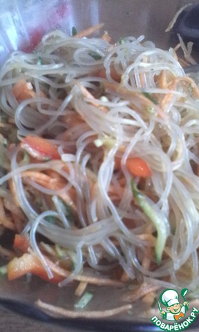 - замачиваю рисовую вермишель на 10 мин. в воде,