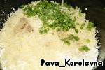 К творогу добавляем сыр, мелко рубленую зелень и не забываем посолить и поперчить по вкусу.