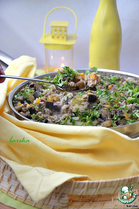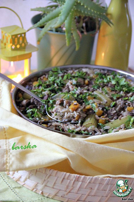 Снять сковороду и дать настояться рису под закрытой крышкой ещё 15 минут!!! -