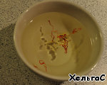 Сначала для нашего блюда мы замочим шафран в теплой воде.