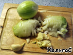 Добавим мелко нарезанный лук и чеснок и, помешивая, поджарим в течение 10 минут на небольшом огне.
