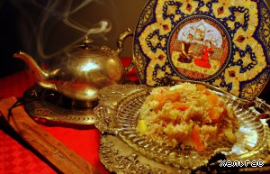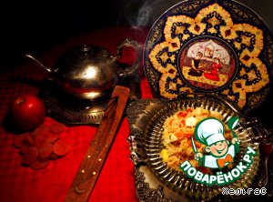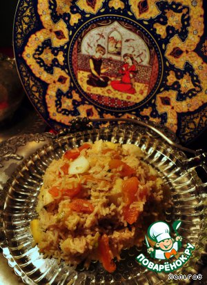 Рецепт кухни Персии (Ирана). Восток - дело тонкое, и в кулинарии необычные сочетания удивляют. Этот рецепт взят мной из журнала *Food & Wine*. В поисках интересных рецептов я перелистала множество журналов различных лет, потому как найти что-то необычное... ох как нелегко. Это рецепт удивил меня сочетанием лука, чеснока и яблок с абрикосами, а уж в сочетании с корицей и шафраном получилось восхитительное блюдо, просто пришедшее из Восточных сказок Шахерезады или Алладина. Это старинное персидское блюдо для свадеб, также готовилось в королевских семьях. Как прекрасно окунуться в этот мир теплого Востока в дождливый день конца ноября. Заходите и угощайтесь!