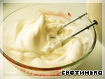 Теперь соединяем взбитое со взбитым. На сей раз можно и не церемониться. С помощью миксера быстренько доводим до нужной пышной кремообразной консистенции.