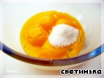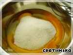 Желтки протираем с остатками сахара до полного растворения последнего, добиваясь кремообразного состояния ингров.