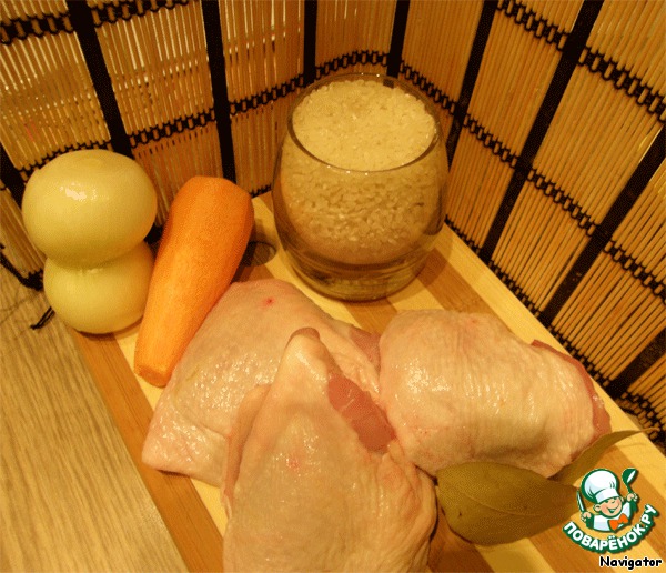 - Рис ( круглозерный,не пропаренный, лучше Краснодарский) — 1 стак.