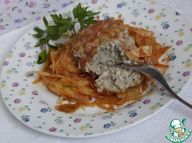 Из рисово-мясного фарша сформировать шарики и аккуратно погрузить их в капусту.