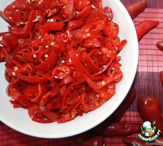 Посвящается всем любителем остренького! Используется в качестве добавки к супам, соусам, ну и с хлебушком, конечно же, «за милую душу»! Отличная приправка, не сложное приготовление, доступные продукты – шикарный результат! Срок хранения 6 месяцев.