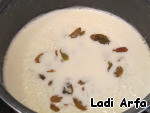 Изюм промыть и распарить кипятком, после чего перемешать с рисовой кашей, а также добавляем 40 г сливочного масла. -