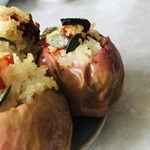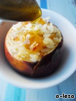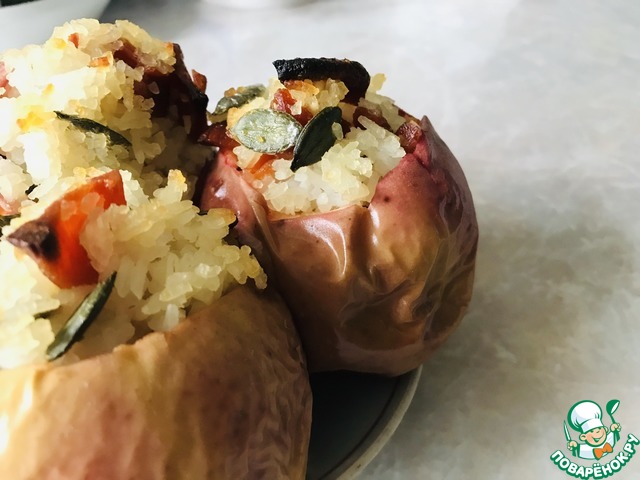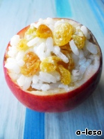 Наполнить яблочные "стаканчики" рисовой начинкой, плотно утрамбовать.