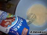 Постепенно добавляем желтки, муку с разрыхлителем.