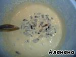 Вводим сгущенку и постепенно, по столовой ложке, муку