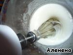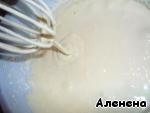 Отдельно взбиваем 4 белка с постепенным добавлением 100г. сахара в течение 15 минут, добавляем муку.
