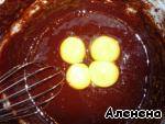 Масло взбиваем с 50г. сахара, добавляем растопленный шоколад (6 мин. в микроволновке), желтки -