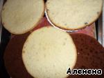 Бисквиты разрезаем и обязательно пропитываем сиропом.