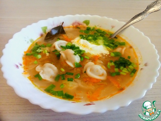 Суп понравился, но поправочку я все же внесу. С пельменями, на мой взгляд, картошка лишняя. А вот овощной кислый бульон и остальные овощи - ну, очень!