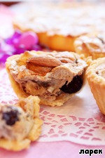 Раскатайте охлажденной тесто в лепешку. Круглую форму диаметром 22-26 см смажьте маслом и выложите в нее тесто, сделав бортики. Наколите вилкой. У меня тесто осталось, поэтому сделала еще три корзинки.