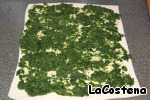 Раскатать слоеное тесто и намазать протертым шпинатом.
