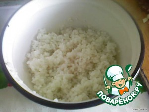 • Добавить чеснок, рис и ещё немножко потушить. Посолить, поперчить и дать остыть.
