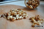 Теперь займемся орехами. Их нужно измельчить и обжарить на сухой сковороде. Вместо того, чтобы измельчать в блендере, решила просто порезать.