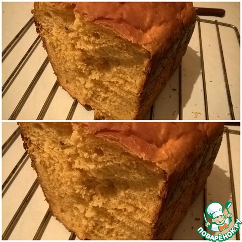 Отчет с пылу жару) ещё теплый пробовали. Добавила курагу изюм. Выпекала тоже хлебопечка теплый вкусно если до завтра доживет ещё отзыв напишу
