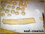 • Полученное тесто делим на булочки приблизительно 40 шт, катаем шарики и оставляем подойти минут на 15.