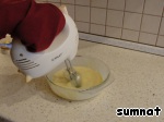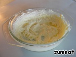 3. Смешайте белковую и желтковую массы, введите смешанную и просеянную смесь крахмала и муки.