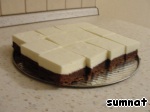 9. Достаньте застывший торт-суфле, отрежьте горячим и сухим ножом округлости по четырем сторонам так, чтобы получился квадрат (можно остановиться и на этапе торта, просто украсив его по своему вкусу, но мне нужны пирожные
