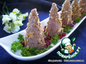 Вариант №2. Можно к процессу готовки подключить подрастающее поколение и дать команду накрутить шарики, конусы, затем обвалять их в растолченных грецких орехах. Добавленные зёрна граната, кинза только подчеркнут вкус паштета, придадут кавказский колорит.