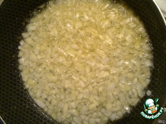 • Шинкуем мелко 1 репчатый лук и жарим на масле.