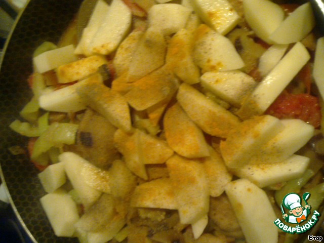 • Накрываем крышкой , пусть томится на медленном огне. Как будет готово, добавить мелко нарезанную зелень.