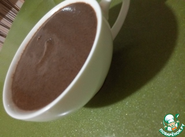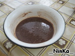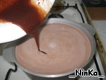Вливаем в молоко+вода нашу шоколадную смесь тонкой струйкой, постоянно помешивая.