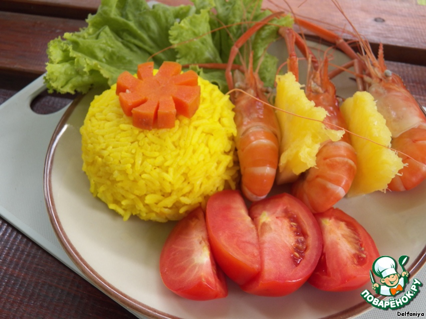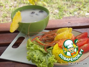 Подавать с кусочками свежих ананасов и томатов и шафрановым рисом, как гарнир или добавку к супу.
