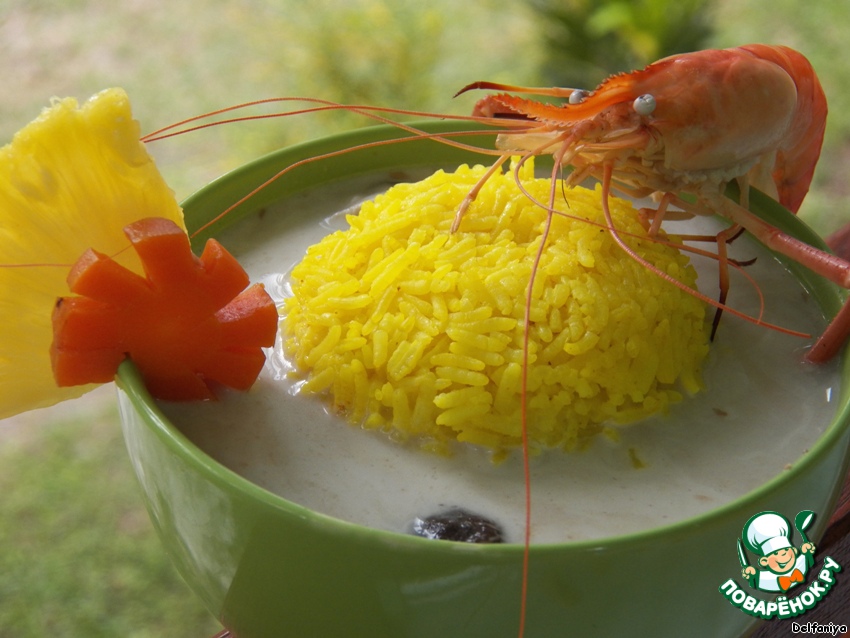 Рецепт «Том Кха с морепродуктами, шиитаке и шафрановым рисом»: