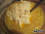 Добавить растопленный шоколад, муку, какао, гашеную соду, хорошо перемешать.