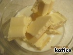 К полученной смеси добавляем сливочный сыр, у меня белый шоколад и шоколадная Филадельфия, можно взять обычный сливочный сыр и темный шоколад.
