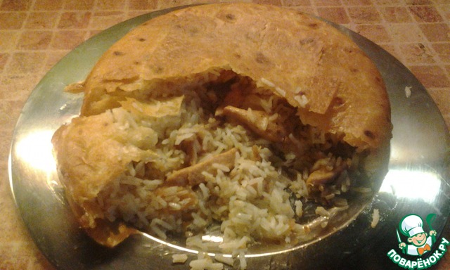 Ставим в духовку (в печку), в итоге лаваши должны зарумяниться и рис должен быть готовым.