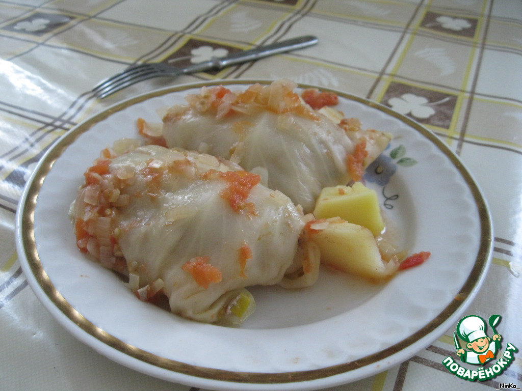 Очень вкусное блюдо. Нежный фарш, завернутый в капусту.