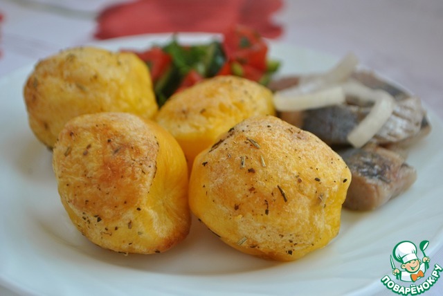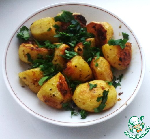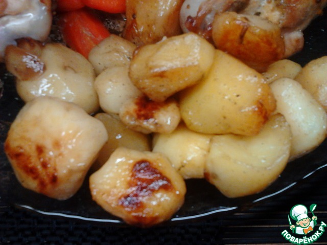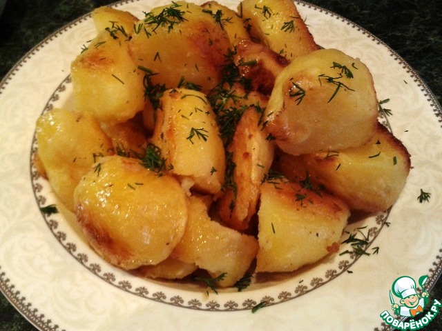 Картошку вынимаем из сковородки, а оставшееся масло со специями зальем отваром и добавим немного муки и еще подержим в духовке - получится прекрасный соус
