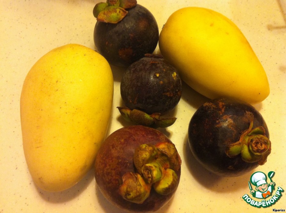 Манго я брала вот такие, у меня фотка только с мангостинами, но это те которые действительно очень вкусные в десертах и соках!